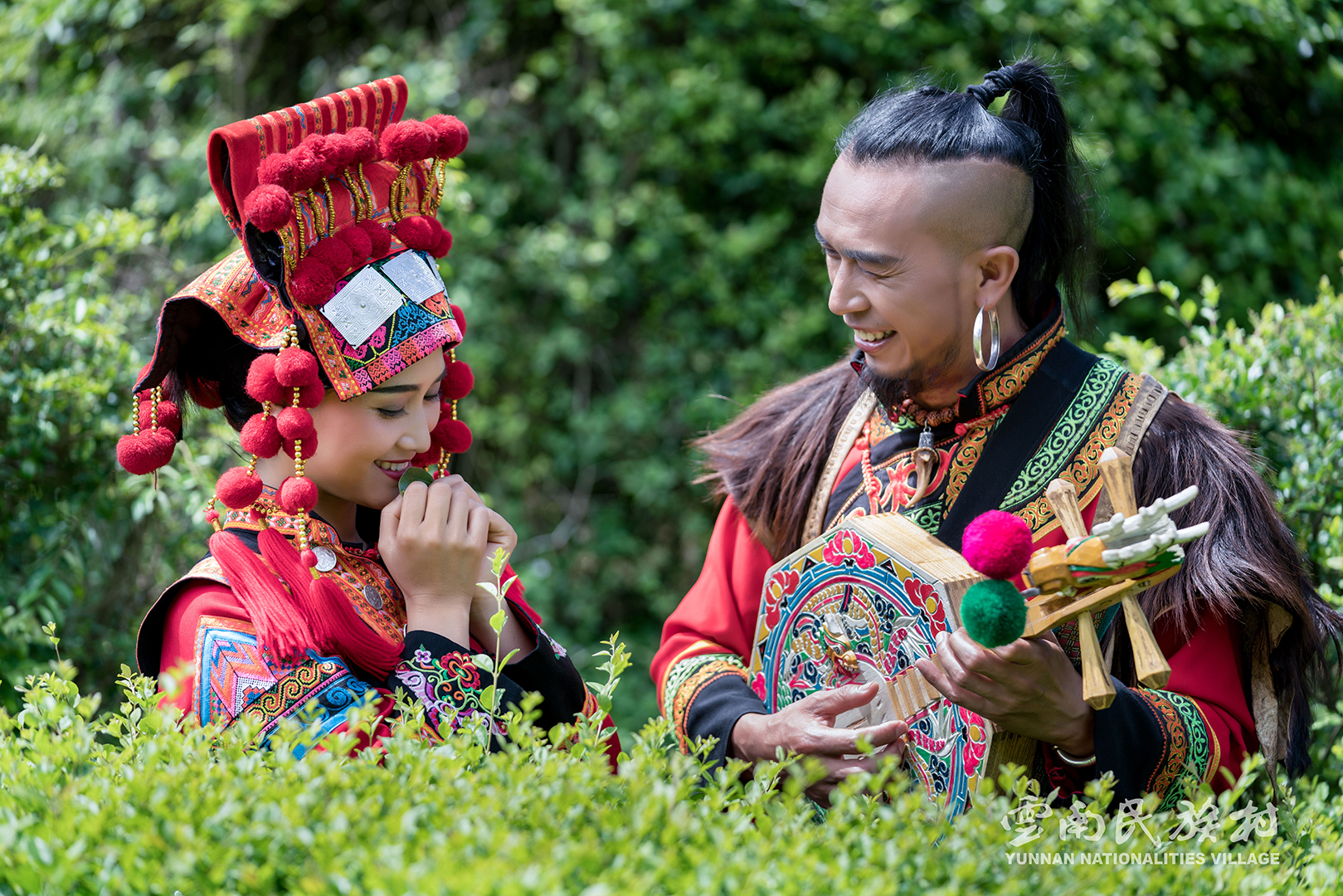彝族在云南境內(nèi)約471萬人,是省內(nèi)人口最多、分布最廣的少數(shù)民族,主要聚居在金沙江、元江流域和哀牢山、無量山腹地。彝族是一個(gè)能歌善舞的民族,民間打歌、跳樂之風(fēng)盛行,大三弦、跌腳舞久負(fù)盛名。火把節(jié)是彝族最具特色的民族節(jié)日。彝族村占地50余畝,三虎浮雕墻與虎頭內(nèi)祖師形象表現(xiàn)了彝族虎鷹文化。太陽歷廣場(chǎng)圖騰柱上有太陽、虎、火和八卦圖形象,周圍環(huán)繞著10個(gè)朝向不同的月球造型,外圓周有12生肖石雕。依山而建的“...
